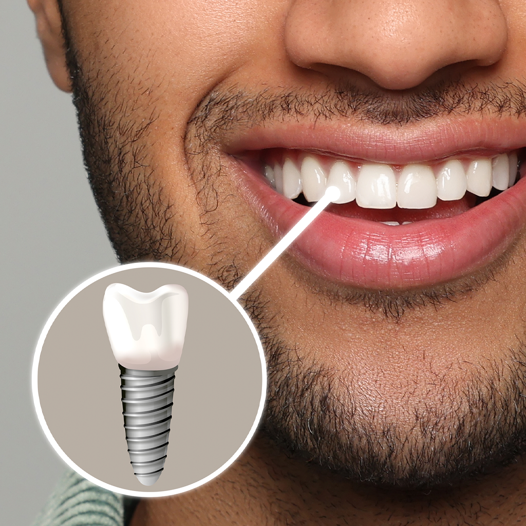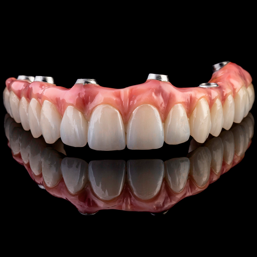 É um tratamento com aparência natural para substituir um ou mais dentes ausentes. Serve como um novo dente, ajudando a preencher o espaço deixado pelos dentes ausentes.